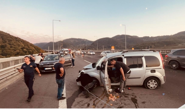 Anadolu Otoyolu'nda meydana gelen trafik kazasında, hafif ticari araçla otomobil çarpıştı. 5 kişinin yaralandığı kaza nedeniyle Anadolu Otoyolu'nun İstanbul istikametinde ulaşım bir süre kontrollü olarak sağlandı.