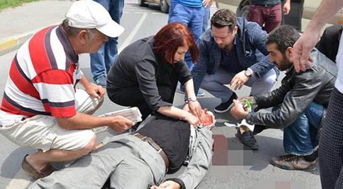 Başörtüsünü tampon yaparak durdurmaya çalışan Toprak, yaralının boğazına kaçan diline de müdahalede bulundu. Yaralı, müdahalenin ardından olay yerine gelen ambulans ile hastaneye sevk edildi.
