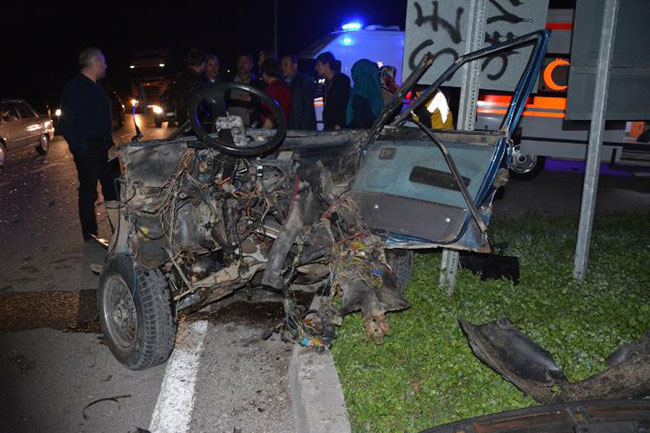 Samsun’un Bafra ilçesinde meydana gelen kazada otomobil ikiye ayrıldı. İkiye ayrılan araçta bulunan 4 kadın kazayı burunları bile kanamadan atlattılar. Olay yerine gelen ambulanslar ise geri döndü.Edinilen bilgiye göre kaza, Samsun-Sinop Karayolu’nda meydana geldi. Samsun İstikametinden Sinop istikametine seyir halinde olan İsmail Ç. idaresindeki 49 AZ 616 otomobil Bafra’ya 4 kilometre mesafede Lengelli Kavşağından Bafra yönüne dönüş yapan Safiye Ş. idaresinde ki 55 NM 434 plakalı otomobille çarpıştı. Kazada Safiye Ş.’nin kullandığı araç ikiye ayrıldı. Kaza sonrası sürücü Safiye Ş. ve otomobilde bulunan 3 kadın aracın koltuklarında oturdukları şekilde kaldı. Kadınlar burunları dahi kanamadan otomobilden çıktılar. Diğer aracın sürücüsü de kazayı yara almadan atlattı. Olay yerine gelen ambulanslar ise geri döndü.NE OLDUĞUNU ANLAYAMADILARAraçtan inen kadınlar, ne olduğunu anlamadıklarını, bir anda otomobilin önünün gittiğini ve kendilerini yerde oturur vaziyette hissettiklerini söylediler. Otomobil sürücüsünün yakınları önce ikiye ayrılan otomobili görünce feryat ettiler daha sonra kazada kimsenin yara almadan kurtulduğunu öğrenince, "Cana geleceğine mala gelsin. Araba önemli değil çok şükür kimseye bir şey olmadı" dediler.(İHA)