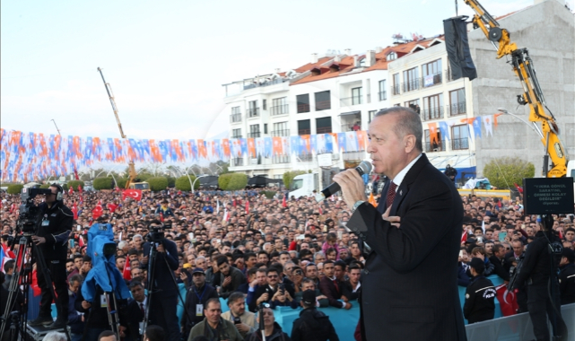 Cumhurbaşkanı Erdoğan, Adliye Sarayı yanındaki düzenlenen mitingde Marmaris-Datça Yolu, Milas İçme Suyu Arıtma Tesisi ve Bodrum Devlet Hastanesi ile Yapımı Tamamlanan Diğer Projelerin Toplu Açılış etkinliğinde açıklamalarda bulundu.