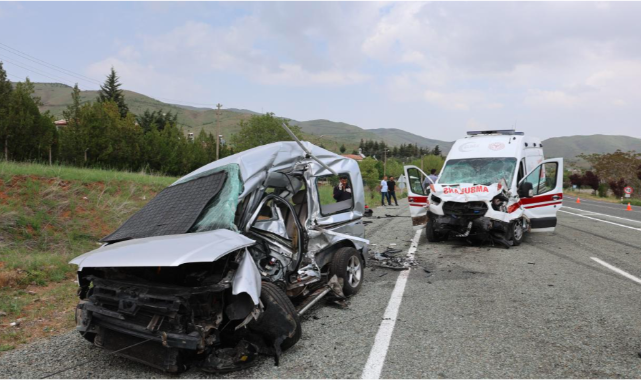 Elazığ'da ambulans ile hafif ticari aracın çarpıştığı trafik kazasında, aralarında polis, sağlık görevlisi ve hastanın da bulunduğu 1'i ağır 6 kişi yaralandı.