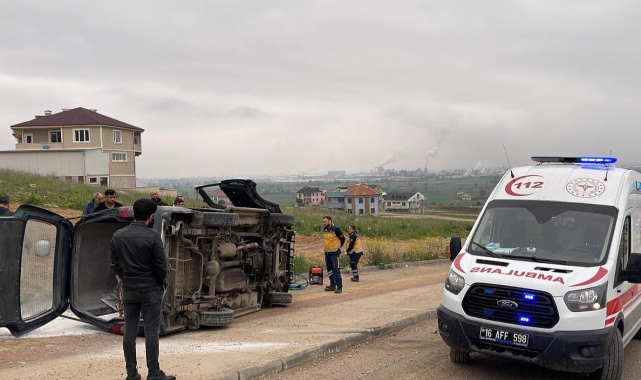 Bursa'nın İnegöl ilçesinde meydana gelen olayda, 34 yaşındaki Mehmet Baykan'ın kontrolünde bulunan 47 ACE 673 plakalı minibüs, Karalar Yolu Caddesi'nde yokuş yukarı seyir halindeyken sürücüsünün direksiyon hakimiyetini kaybetmesi sonucu yoldan çıkarak savruldu ve devrildi.