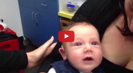 Kulakları duymayan bebek, takılan bir işitme cihazı sayesinde annesinin sesini ilk kez duyuyor. Annesinin sesini duyduğu anda ki surat ifadesi ise dünyalara değer.