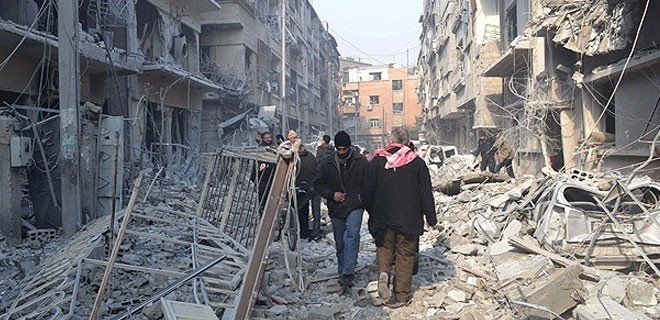 Suriye ordusuna ait savaş uçakları ile birlikte hava operasyonu düzenleyen Rus kuvvetleri başkent Şam'ın Doğu Guta Bölgesi'nde yer alan hamuriye İlçesi'ne saldırdı. Bölgedeki sivil savunma yetkililerinden gelen haberlere göre bilanço her geçen saat ağırlaşmaya devam ediyor.