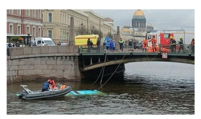Rusya'nın St. Petersburg kentinde yolcu otobüsünün nehre düşmesi sonucu meydana gelen trafik kazasında, 4 kişi yaşamını kaybetti.