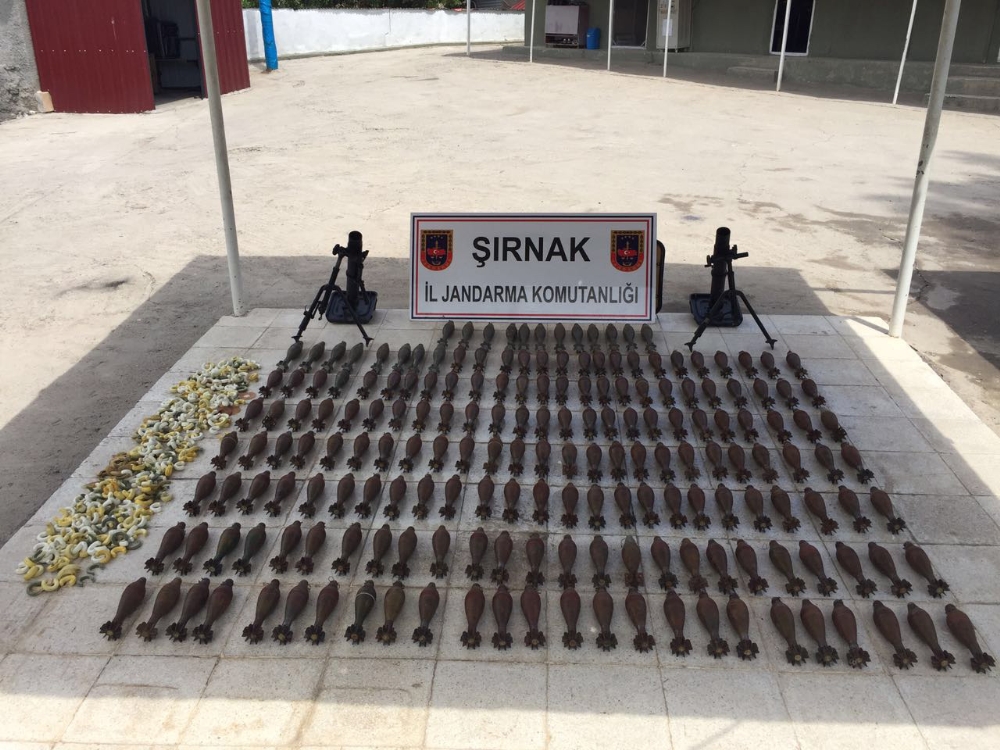 Şırnak İl Jandarma Komutanlığı tarafından gerçekleştirilen operasyonda, 187 adet 60 milimetre havan mühimmatı, 2 adet 60’lık havan ve dip tablası ile 400 adet sevk barutu ele geçirildi.