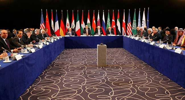 Rusya ve ABD'nin talebiyle toplanan ve Türkiye'nin de dahil olduğu 17 ülkenin dışişleri bakanlarının katıldığı Uluslararası Suriye Destek Grubu toplantısında karar çıktı.TERÖR ÖRGÜTLERİ ANLAŞMAYA DAHİL DEĞİLLERÇatışmaların 1 hafta içinde durdurulması ve kuşatma altındaki bölgelere acilen insani yardım ulaştırılmasını öngören toplantıda terör örgütleri temsil edilmedi ve anlaşmaya IŞİD ve El Nusra gibi terör örgütlerinin dahil olmadığı bildirildi.