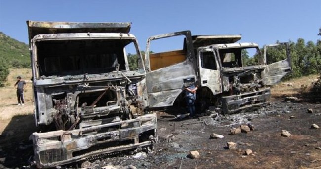 PKK'lı hainler iş makinelerine zarar vermeye başladı. Amanos Dağları'ndaki taş ocağına ait olan iş makineleri teröristler tarafından ateşe verildi.
