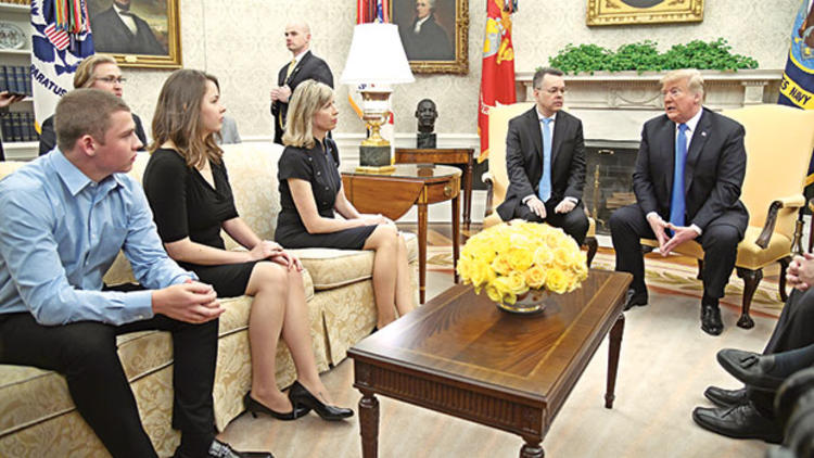 ABD Başkanı Donald Trump, rahip Andrew Brunson’un serbest kalması için aylardır bizzat kendisi uğraştı. Rahip Brunson, ABD’ye adım attıktan iki saat sonra ABD Başkanı Trump tarafından Beyaz Saray’da bulunan Oval Ofis’te ağırlandı.